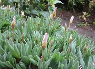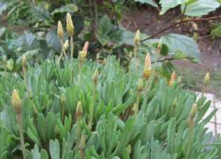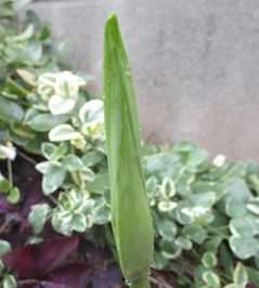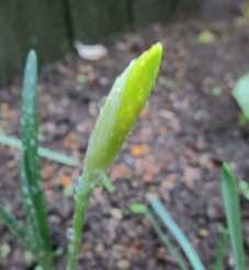 (地植え黄色のリコリスの蕾。オキザリス・レグネリーの葉の下にあったのが出てきた。)