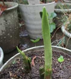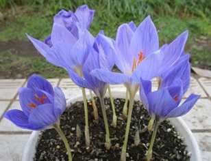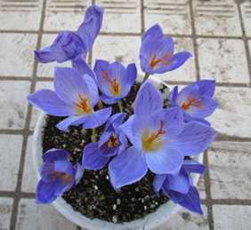 (秋咲きクロッカス。7号鉢に植えてある。)
