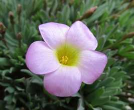 (オキザリス・ヒルタ。8号鉢に植えてある。)