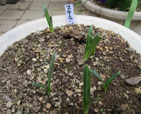 (円形プランターに約30球植付けた。小さな球根が10球程度余ったが廃却。)