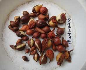 (タイニーティモの球根。6月に掘り上げたものである。)
