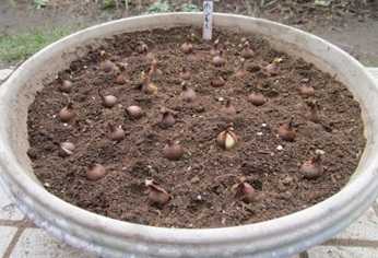 ミニチューリップ・ホンキートンクの球根を植付けた。