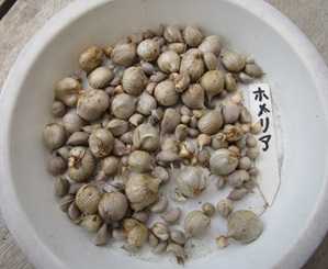 (なお地植えで植えっぱなしのホメリアは既に発芽してだいぶ伸びている。)