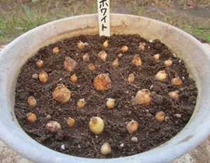 ムスカリ・ホワイトマジックの球根を植付けた。