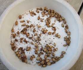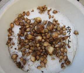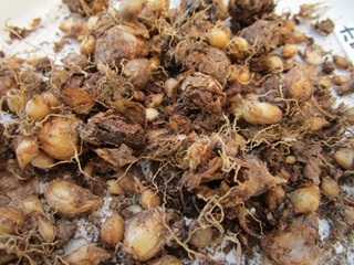 (ホワイトマジックの球根。6月に掘り上げたものである。)