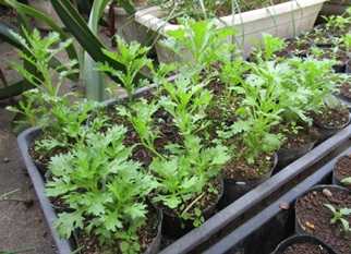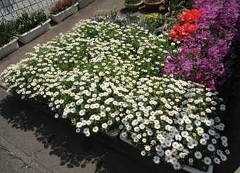 (ポット上げしてあるノースポール。ほとんどはまだ小さいが、)
