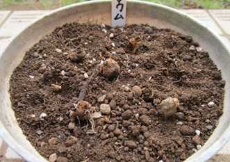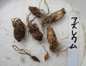 (アズレウムの球根。6月に掘り上げたものである。)