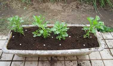 (まず4株を標準プランターに定植。)
