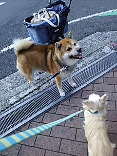 帰り道ではお友達のコタロウクンに会えて自分から挨拶してました。