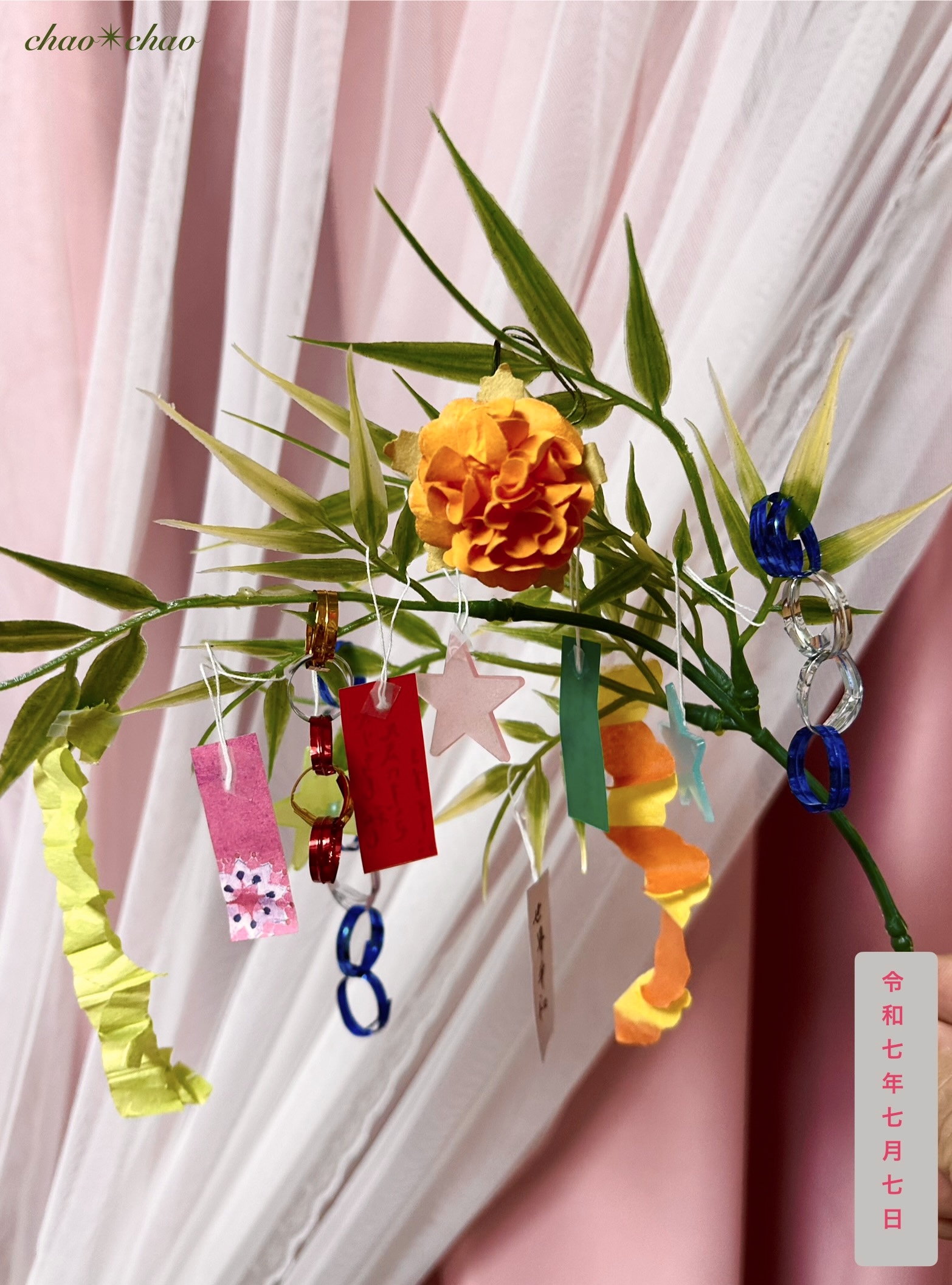 毎年恒例、ウチの七夕飾り。。。です。 今年は、令和7年7月7日 のスリーセブンなんですねえ! 相変わらず、ミニ。で。 ここのとこ、2,3年、もうちっちゃい「ミニ」で作るようになっちゃいました。(笑) 今年の短冊の一枚は、 お友達のkumaru04さんの処の愛猫チャコちゃんがお具合がよくなくて... とても心配でありますので お星さまにチャコちゃんのことお願いしたくて 心をこめて書きました☆彡 ★ どうかどうか チャコちゃんをお守りください... ★ 午後の追記 チャコちやん、今朝、kumaru04さんの腕の中から 旅立ってしまわれたそうです。 お願い、間に合わなかった。。。(p_-) 恒例、過去のお飾り並べて「ちゃおりん家七夕コレクション」 2015 2016 2017 2018 2019 2020 2021 2022 2023 2024 2025 ******************************** 昨日、お友達の naenataさん より 素敵な「夏セット」いただきました(^^♪ 人気のユニクロのものより優れモノという、 ワークマンの爽やかな白のフード付きサンカットのウェアと ぜんぜん脱げちゃったりしないビックリな、優秀なダイソーのソックスと、 手の甲カバーまで(^^♪ 一品ずついろいろ考えて選んでくださったセットでした。 ほんとにありがとうございました。ヽ(^o^)丿