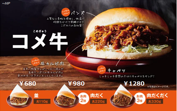 牛カルビのバーガーの " コメ牛" はね、画像を御覧になって、