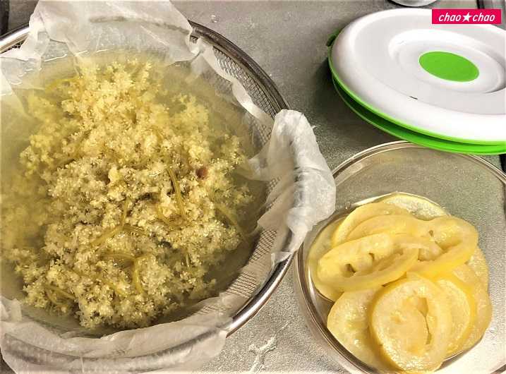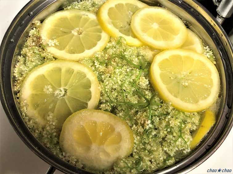 このエルダーフラワーは、レモン、お砂糖と一緒に煮てシロップにすることで