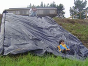 と雨も止んだもで、家の庭の坂で、スライダーをすることに。