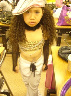 もうすぐお姉ちゃんの発表会です。衣装と髪型親子バトルしながらやっときまりますた・・・_ノフ○ グッタリ今回はちょっと黒人チックにキメてみました(´゚ω゚):;*:;ブッおなかが・・・今回は曲の途中に早着替えでジャケットを着るのですがなかなか間に合わなくて大変でした(ノ_ё)ウゥ・・・ゥ・・・ゥ・・・本番で失敗しなければいいのですがヒヤヒヤものです|壁|lll´Д`)))ブルブルブル