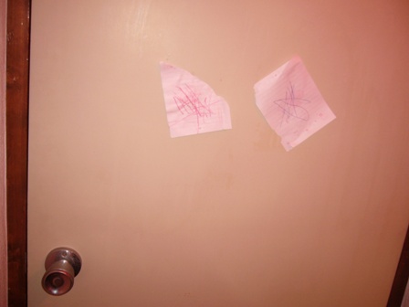昨日おねえちゃんとママが仲良く話していたのが気に入らなかったのか・・・リオが引きこもり(◎Д◎ノ)ノひぇぇぇドアには張り紙が・・・「ひとりにして(*`Д´)φ_」と捨て台詞で入ってしまいました(〇o〇;) !!(ノ_-;)ハア・・・・・・と思っていたら張り紙をよく見るとな・・・なんてかいてあるのΣ(・ε・|||)?ちょっぴりイミフだけどなんかこんなことまでするように・・・(●′ω`)σ★каωαЁ ☆と思ってしまいました(´゚ω゚):;*:;ブッでもこれが大きくなってからやられたら困るので笑いをこらえながら(*^m^*)部屋に入り、なんでこんなことするのか聞いたら「だってママはリオのものだもん(`‐ω‐´)」(* ̄ω ̄*)キタ─wwヘ√レvv~(゚∀゚)─wwヘ√レvv~─ !!独り占め攻撃!!ちょっぴりうれしいけど(*^m^*)ムフッおねえちゃんがいる手前、だめだよ~ママは2人のママだからみんなで仲良くしようとなだめるしかできませんでした_ノフ○ グッタリ