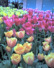 先日オランダとベルギーに行ってきました今年は年相応みたいで花は6、7割見れましたちゅーりっぷも可愛かったです。が去年のほうが綺麗だったのでチョビット残念でしたが・・・温室は満開でした☆オランダ・ベルギーというとこの時期だけに集中してしまうのですが、私的には秋などもいいかもしれません。。特にベルギー。美食の国でとっても美味しいです今回行ったブリュージュの街は北のヴェニスとも言われる運河が入り組んだ可愛らしい街です。今回は泊まったので静かなうちに運河が撮れました運河にボートが動き出すと人も増えて賑やかな街になりますが、朝晩は本来の静けさが戻ってきます・・・ムール貝はベルギーの名物です。時期は冬ですが。あとフレンチフライも。後ろにさりげなくワッフルも入れときました。ワッフルは2種類あってどっしりタイプとふんわりタイプがあります。日本ではどっしりタイプでしょう。現地のレストランではふんわりタイプが多いです。イタリアのピザみたい。あっちも厚い生地と薄い生地がありますよね!これはブリュッセルで撮ったワッフルですあと忘れてならないチョコレート・・・ベルギーには沢山のチョコレート屋があるんです一軒一軒のお店が凝っていておいしいんです!!最後に一番美味しいもの・・・いらっしゃ~い。と可愛い看板娘??そう、ベルギービール今回は色々試して見ましたこれはトラピストビール(修道院)の「ロッシュフォルト」です。前にも書きましたが、ベルギーにはビールの種類がたくさんあって、しかもその銘柄毎に違う種類のグラスを使用するのです!今でも修道院で作られている本物のトラピストビールは6種類しかないそうです(うち1種は幻とか・・)これは忘れました・・・・これは「KWAK」というグラスの面白いビールです。飲むのが大変でしたが・・・結構8度とか度数の高いビールが多くて、苦味も強いので日本のビールとは好みが別れるかもしれませんが、こちらはちびちび飲むほうなので私は此方のほうが好きですね~がぶ飲みタイプはドイツとかチェコのビールでしょうか。さらにこの時期はヨーロッパで高級食材の白アスパラも出回り始めていて料理に少し出ましたけどやっぱり美味しかったです日本ではなかなか生では手に入らないですが、缶詰とは全然違います!!この時期にヨーロッパに行く方は奮発してでも食べたほうがいいですよ~大体6月までですから。あ~ベルギー個人的に行きたいです・・・ルクセンブルグとか。そしてオランダでコーヒーショップ・・・なんて危ない、危ない