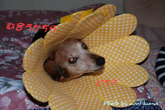 こんばんは はるひにお祝い くぅに励ましのコメントをどうもありがとうございました相変わらず返事を書くのが遅いくまこですがどうか気長に待っていてくださいね先々週くぅのエリカラを作るって宣言したのですが・・・型紙が出来た段階に何度も紙で仮縫いをしましたどうしても上手く行かずやっとこさ・・・まぁこれならいっかなという型紙が出来上がり布の裁断縫製 で、後マジックテープにミシンをかけるだけになったところで試着してもらった写真がコレです まずはさっちゃんから12枚の花びらで出来てますなんとな~く リバーシブルその付け心地はどうだったでしょうねぇ 空たんイヤなことをされた時のお顔してますねぇそして夕べミシンで本縫いして仕上げた手作りエリカラくぅにつけてもらいました・・・・・使ってるハードタイプのエリカラは透明で見通しが良いのですが・・・口先が出てしまいおちりや背中に届いてしまうのでかなり長めに作ってみたんです掻かないようにという目的は果たしてるのですが従来のエリカラが64グラムくらいに対して約倍の重さ121グラムあるんですこれでも軽量になるよう工夫したのだけどこの重さってどうなんでしょう使えないかなぁ・・・台風が通り過ぎ火曜日は眩しい青空の一日になりましたこの空に旅立った友人の妹さんどうかゆっくり休んでくださいね・・・久しぶりの動画ですきゃどっくを与え始めて今日で4日目くぅの食欲が戻ってきたよ今日のうまうま ココをクリックしてね モアナ母ちゃんどうもありがとう~このままちゃんと食べてくれますように