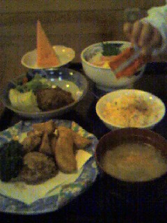 サクヤがハンバーグを食べたいと言うからハンバーグのついたお子様定食を注文しました。私はサクヤの残りも食べないといけないのてカニ雑炊530円。お子様定食は840円なり~