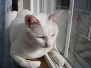 今日もお天気は晴れ、外からスズメの鳴き声が聞こえてきます。それにしても昨夜は、蒸し暑くて寝苦しい夜でした。暑くてぐっすり眠れない上に、チビが起こしたのは2時半!私も彼も目が覚めてしまい、その後はうつらうつら・・。月曜日の朝なのに、二人とも眠いです。『今日、昼間、チビを寝かせるなよ 眠ければチビも夜中に遊ばんだろう』彼からの指令が出ました。前に同じことをしたとき、あまり効果はなかったんだけど・・。もう一度試してみます。昨夜、ご機嫌斜めだったチビも、一晩寝て、いつもの甘えん坊に戻りました。カーテンを開けると、チビは「お日様♪ぷり~ず」するため窓際に。私が朝食の準備を始めると、チビもキッチンの所定の場所で監督します。私の食事と一緒に、自分もご飯をもらえるとわかっているんです。チビのお皿にご飯を入れ、私も朝食をとります。チビは『ご馳走様ニャン』をすると、また寝室に行き窓際で日向ぼっこ・・。私が呼ぶまで、帰ってきません。梅雨前の太陽の光、いっぱい浴びておこうね。私がリビングからチビを呼びます。窓から降りる音が『ドスン!』と聞こえ、チビがすました顔で戻ってきました。そしていつもの通り道を通って・・。これが毎朝のチビの日課です。では、チビの日課をご覧ください。チビ、お日様気持ちいいね~ リビングも太陽がさしてきたよ、こっちにおいで♪ ステレオの上からテレビまで、ここがいつもの通り道ちゃんと置いてあるものを避けて歩いていきますその様子を動画でご覧ください一遊びした後は、ここでちょっと休憩ニャン 事情により、楽天会員以外の書き込みを停止しています。楽天以外の方はこちらの掲示板をご利用ください。日記の右側にスクロールバーがついていますスライドさせながら日記を読んでくださいね♪ブログランキングに参加していますチビをポチッとクリックして 応援よろしくお願いします☆
