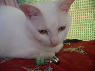 昨日はたくさんの励ましの言葉、ありがとうございました。彼と私の気持ちはまだすれ違ったまま・・。時間をかけて、話していこうと思います。今日も爽やかで良いお天気です。彼と二人で湯布院にお出かけするつもりでした。でも夜中にチビの大運動会で二人とも目が覚めてしまい、寝たのは朝方。彼はたぶん、午後にならないとおきれないから、中止かな。落ち込んだ私を励まそうと、彼から誘ってくれたのに・・。もう~、チビのバカバカ!昨日、夕方、彼の髪を切り、その後テレビを見てたときの事。半纏の上で寝ていたチビがいないので、何気なくサークルの方を見ると・・。チビが座り込んでこちらを見てました。チビの隣には、なにやら怪しげなものが『コロン』と・・。ウンチでもしてしまったのかと思ってそばに駆け寄ると、なんと大きな毛玉!いつも、抜けた毛はウンチと一緒に出してました。毛の生え変わりの時期で、大量の毛が体の中にたまり、吐いてしまったようです。毛玉を吐いたのは今回が初めてです。毛玉のほかに胃液も点々と、吐いてました。チビも少しぐったりして、リビングのカーペットの上で休んでました。毛玉と胃液の掃除をしてリビングに戻ると、ニャーニャー鳴きながら甘えてきます。少し元気になったかな。ネズミのおもちゃを見せると、目をクリクリさせて『早く投げてニャン』と♪これだけ元気に遊べれば、大丈夫ね。遊んだ後、ご飯もしっかり食べてました。 チビと暮らし始めて3年9ヶ月。初めて毛玉を吐いたチビを見て、少しビックリさせられました。チビ、ほら、見て見て~♪『あっ、ネズちゃんだニャン』 チビ、おなかの肉が邪魔してるんじゃない?『ニャ・・手が届かないニャ~』『ママ、早くネズちゃん、投げて欲しいニャン』 事情により、楽天会員以外の書き込みを停止しています。楽天以外の方はこちらの掲示板をご利用ください。日記の右側にスクロールバーがついていますスライドさせながら日記を読んでくださいね♪ブログランキングに参加していますチビをポチッとクリックして 応援よろしくお願いします☆