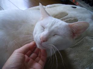 一昨日から昨日にかけて降った大雨。昨日の午後には雨も上がり、夕方には太陽が顔を出してきました。『太陽が照るなんて、何日ぶりだろう 明日は晴れてくれるのかな』そんな淡い期待を持って、昨夜は眠りました。残念、今朝も雨です。まだ雨に関する注意も出ています。休みの日、我が家は不健康生活になってしまいます。彼の仕事のあるときは、夜勤があるとはいえ、規則正しいリズムで生活しています。ところが休みになると、夜更かしに、乱れた食生活!昨日も7時に起き、パンと牛乳で軽い朝食。その後9時に、二度目の朝食。13時におやつを食べ、15時に遅い昼食。19時に夕飯、21時におやつ・・。一日6食も食べてます。食べすぎとわかっていても、おなかが『ぐ~っ』と、食べ物を要求してくるんです。不妊治療の薬の副作用で、太ったけど、食べすぎにも原因ありそう・・。治療を始める前の体型に戻りたいなぁ。『いつも綺麗なマサ』でいないと、年下彼に嫌われちゃう?!よ~し、今日からダイエット、頑張ります!『三食、きちんと食べて、間食はなし』天気の良い日のお散歩も復活させます。目指せ、マイナス3キロ!彼にも甘えることを覚えたチビ。出かける準備をしている彼の前にで~んと寝転がり、 『ナデナデしてニャン』と催促するようにクネクネカラダをさせてきます。要求されたら、やはりこたえてあげたいのが親心。彼も嬉しそうにチビとスキンシップしていました。私と彼には本当に懐いてくれています。でも来客があると、押入れに隠れてしまって、でてきません。みんなに可愛がってもらえるようになるといいのにね。朝からパパがいっぱいナデナデしてくれたニャン『とっても嬉しいニャン』 『そこそこ、そこがいいんだニャン』 『パパ、もう終わりニャン?気持ちよかったのにニャ~』 『仕方ないから、今日も一人でここでくつろぐニャン』あらら、チビ、拗ねちゃったよ・・ 事情により、楽天会員以外の書き込みを停止しています。楽天以外の方はこちらの掲示板をご利用ください。日記の右側にスクロールバーがついていますスライドさせながら日記を読んでくださいね♪ブログランキングに参加していますチビをポチッとクリックして 応援よろしくお願いします☆