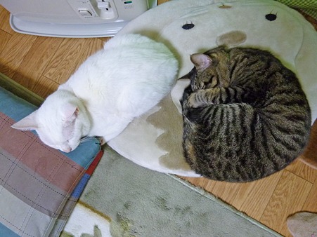 暖かくなりストーブの出番がなくなってきました。ストーブ前で寝るのが毎日の日課だったニャンズ。ストーブ前の座布団に一応座るものの暖かくないためすぐに移動。グッスリ眠るのは昼間だけ。夜、連ドラを見る頃には二人ともウロウロウロウロ。動きまわればどちらかにスイッチが入りバトルに発展するためたっくんのそばを離れられません。連ドラはたっくんのお部屋の15型のアナログテレビで見ています。リビングの大きなテレビで落ち着いてゆっくり見たいです。たくぅ~、ちびたんとネンネしようねぇ 日記の右側にスクロールバーがついていますスライドさせながら日記を読んでくださいね♪ブログランキングに参加していますチビをポチッとクリックして応援よろしくお願いします☆ふわふわオムレット♪「ニコニコ12個(6種類)お試しセット」大特価 2,500円 (税込)【送料無料・ネット限定販売】
