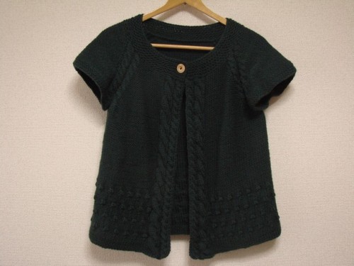 えーと編み上げたのは、これも冬休み。通勤に着て帰ってから、ふと写真撮ってないことに気づき撮影ちょびっと着た時のシワがついてますが色がうまく出ず残念もう少し明るめの深緑。合太だったので、2本取りにして編んでます糸はねーアベイル・コマドリさんで3年くらい前に買った福袋の糸。メーカーわかんないですが、輸入糸ぽいです。ウールにアルパカ入りだったかと。編み上げた時に帯捨てちゃって、もうわかんないせっかくブログやってんだから、ちゃんと記録しよーぜ自分暗くて模様がわかんないかとアップ。下の方の模様編み、編み方分からず基礎本見たけど載ってなくて、ネット徘徊。苦労しました~棒針編みはまだまだ初心者なので、減らし目とか編み図の見方がわからない時もありました幸い、職場の同僚が以前ヴォーグ学園に通ったことがあるそうで、教えて頂きましたほんとはじっくり教えてもらいたいけど、お互い時間取れないので仕事中にこそっとおかげで完成させられました編み図はヨーロッパの手あみ2008秋冬です。昨冬の編みかけからの完成ですランキングに参加しています。よろしければ、ぽちっと押していただけると励みになります ではポチッと→ こっちも~