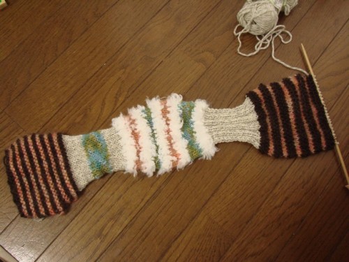 在庫糸活用プロジェクト~お次はマフラーにしてみようかと、思い立った参考編み図はこちら。【送料無料】しましま♪ニット小物この中のスリムマフラー。 こちらを参考に、糸は在庫から活用ほんとはこの本の通りの色合わせが、めっちゃ好みなんですけどねーでは編地アップ ごらんの通り棒針です。幅は13~8cmくらいかな?本の通りじゃないけど、悪くない色合わせかなーと自負してますがいかがでしょう?糸と編み方がころころ変わるので、棒針でも退屈しないし編んでて楽しいこんな糸たち使ってますこげ茶とオレンジは前回の帽子と同じ糸。グレーのみストレート糸です。肌触りがいまいちなのはこげ茶モヘアのみ。部分的なら、巻物とありかとオレンジは極細なので4本取り。本ではスリムマフラーですが、ここまで編んでスヌードにしたくなってきましたもっと長くして二重に巻ける長さでスヌードにしよう 今日はお仕事お休み~。仕事が暇でカットされることが多く、給料激減3月は春休みでろくに働けないしな~4月からに期待して、のんびりするしかないかなー。その分在庫糸活用に精を出そう ランキングに参加しています。 よろしければ、ぽちっと押していただけると励みになります ではポチッと→にほんブログ村 こっちも~
