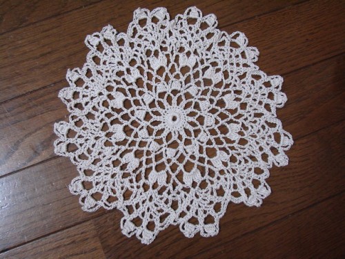 GW明け初日の朝は、キツイですね~今週は珍しく毎日仕事の予定4月は春休み&懇談会やら家庭訪問やら遠足やらと、行事もわんさかであまり働けなかったのに、いきなり毎日なんてハードいえ、自分でシフト入れたんですけどねさて、前回の棒針カーデちゃんと編んでますが。一度全部解きました2玉編んだとこで丈が異常に長いことに気付きてか、なんでもっと早く気付かない私今度は針を一号落して編みなおしやっと前回画像まで戻りましたそろそろかぎ針が恋しくなりドイリーを編みましたでかっ想定外の大きさにこの花瓶に敷こうと思ってて、なぜこうなるうん、大きいね本では4号針で編む太糸レース編みの本からチョイス。糸はこちら。【毛糸ピエロ】【編み物・手編み・手芸】【592】NEWコットン・レース糸20番[綿100% 中細 ]これを2号針で編み編み。きっと小さくなると思ったのに、4cmしか小さくならなかったあーでもよく考えたらそういうもんかまたも考えが甘かったですまあ悪くもないので代わりのを編むまでこのまま飾っときます GW中に主人の同僚家族と公園へ初対面ですが子供はパパたちに任せて奥さんとお喋りお話しやすい~子供たちにお菓子の詰め合わせ準備してくれてたり、コンビニにお弁当買いに行ったら、私たちにまでノンアルビール買って下さってたりそんなこと全く思いつきもしなかったですしかも私がビール系全然ダメで、お断りしてほんと申し訳なかったです娘のお花ヘアゴムが手編みと目ざとく見つけて下さり、お話もはずみました奥さんはビーズがご趣味。ご夫婦お揃いで携帯に手作りストラップつけてたのが素敵でしたブログはこちら『 花光 』お互いブログをしてるということで、相互リンクしようと思ったら・・・以前から楽天以外のリンクしてたのが、いつのまにか消えてるそういや少し前に色々変わったんでした、楽天。写真の投稿も面倒くさくなったしリンク方法分かるまで失礼ですが、お待ち下さい~記事内ならできるけど、サイドバーにはどうやって載せるんだろう・・・ランキングに参加しています。 よろしければ、ぽちっと押していただけると励みになります ではポチッと→にほんブログ村 こっちも~