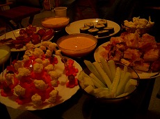 友達のfete(パーティー)に誘われ、手土産に太巻き3本と日本のお菓子を持っていった。早速、お皿に盛り付けられ、ちょっとした前菜! 今日、初めて カリフラワー を 生 で食べた!ん~、食べれるもんなんだなぁ~!意外だった。主催者の友達Mが作った、生野菜のオブジェがとってもかわいかった! 楊枝からにんじんがソースの中で外れた人の罰! 2分間、頭にかぼちゃのクッションを乗せていた。19時30分からスタートで、次々、人が増えてきて20人くらい集まった。音楽をガンガンに流し、みんな踊る踊る!ここは6階屋根裏部屋だぞ!それも結構古い建物。私は下の階の人のことが気になってしょうがない…。ま~、金曜日の夜はみんな多めに見てくれるから大丈夫かな。どうやら、パーティーは夜通し続くようだ…。パーティに来ていた友達Eから、このパーティの趣旨を聞いてビックリ!ずっと、友達Mは独身だと思って付き合っていたが、どうやら結婚していたらしく(私と知り合ったときは別居していたとか…)で、昨日、ようやく離婚が成立!晴れて自由になった。おめでとう!というパーティ。パリからも彼女の友達が来ていた。パーティーに集まった中には友達Mの恋人と昨日まで旦那だった人とその恋人も来ていた。ん~~~、いろんなことがあるもんだ…。