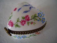 今日は、友達の結婚式でした。区役所で区長や立会人の下、入籍! おめでとう~!友達Yと私は、友達をビックリさせようと、区役所の前で待ち伏せ作戦に・・・!片手にライスシャワー用の米を握り締めてウロチョロ、ウロチョロ。式が終わった友達は、私たちを見てビックリ!うふふ、作戦大成功!花嫁姿はいつもに増してきれいでした!見ることが出来て私たちも感激!うるうる…お祝いに、ハート型の小物入れをプレゼントしました。友達Yは初の絵付けに挑戦! 忘れな草担当! 今回は何度も息を止めて細いラインを引きました。 ふ~~っ 手に乗せるとこんな感じどうぞ、末永くお幸せに~~~!