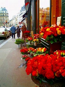 今日のリヨンはとても寒く、風がすごく冷たくてマフラーをしていてもブルブル…そういえば、10月…。道には街路樹の枯葉がいっぱいだし、日照時間もずいぶん短くなったし…。黒いコートを着る人が多くなり、格好いいけど、街から色がなくなる季節です。街が色づくには、ノエルまで我慢かな~。 ハロウィンもそんなに派手じゃないしな~…。 こんな季節は花屋の前を通るのが楽しみです。大好きなバラの花がますます素敵に見えます。
