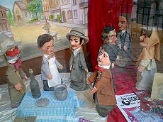 初めてこの人形を見たとき、はっきり言って ん~…かわいくない… と思ったけど、旧市街地を散歩すると、この人形たちをどうしても避けられない!友達にこの絵ハガキを送ったら、「怖い!」って怒られたことが・・・。 だんだん、目が慣れてくるのか、気になる存在になり (?)とうとう、ギニョール劇場 (人形劇)に行くことに!大きな公園の中の劇場で、子供たちに混ざって見てきました。 人形劇が始まると、子供たちは真剣!物語の中で、牛が盗まれたときには、子供たちが 「ギニョール~、助けて~~」 と叫んでいて、どうやら、人形劇のことを “ギニョール”と言うが、右上の写真の彼の名前が ギニョール のようだ。それを教えてくれたのが彼ら! 綿菓子がとても気になって、チョットつまんでみたかった!とにかく、「リヨンのお土産グッズ」には必ず、登場する ギニョール です!