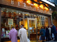 夕食を友達の家でご馳走になることになり、手土産にケーキを!ベルナション はリヨンではちょっと高級チョコレート屋です。 3つ星レストランの“ポール・ボキューズ”で出されるチョコもここの物だと聞きました私は 支店を作らない! というところが特に気に入っています。「高級チョコレート屋」というので、なんとなくParisのお店のトラウマがあり、スマートにサッサと注文できない私が店員をイライラさせちゃうのでは…と思っていました。なぜか、店員に気を遣う私…。スノッブな店員の対応になぜか私が凹む…。が、いつ行ってもここの店員はすごく親切でたくさんのチョコを目の前にして迷っている私にもいろいろ説明してくれたりして、本当に気持ちよく買い物をさせてくれます。今回は、小さなケーキを2個だけ買ったけど、いつもと変わらず丁寧に対応!ケーキは意外に普通の値段で2.70ユーロ大きなケーキはいつもショーウインドーで眺めるだけでもしあわせになります。ははは 友達が作ってくれた「えび入りシチュー」はすごくおいしくて、おかわりしちゃいました。 ご馳走様です~! セロリとえびの香りがとても良かったです