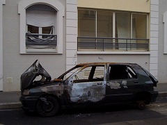 絵付けのレッスンの帰り道、「見てみて、車が…」と、いつも途中まで一緒に帰るクリスティーヌが教えてくれた。 なんせ、この道は裏通りでもあって道が狭く夜には絶対に通りたくない…雰囲気の所。出来て間もないアパートの前で燃やされたようだ。このアパートが出来上がる様子を、毎回クリスティーヌと眺めていた。アパートの壁は焦げてもいなくて綺麗だけど、シャッターがふにゃふにゃ。Bourgognissimoさんのブログ、「車を燃やして新年を迎える」 によると、今年の元旦に燃やされた数、425台!元旦だけで、この数。。。ウワサには聞いていた放火された車を目の前にして、ゾ~~ッとした。ちょっと、 「幸運続き」 で浮かれ気味になっていた私に、 “気をつけろよ!” のサインだと思うことに…。