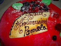 語学学校ではいつも隣の席で、偶然にもアパートも近所の Pamela初めて彼女と出会ったときに、先生から「隣の人をみんなに紹介するように!」と言われ、彼女のことをノートの表紙に簡単にメモしていてみんなの前で紹介。そのときに書いた誕生日のメモは今も残っている。で、彼女も年末から 「1月生まれの人はいい人が多いんだって~」 といつもいつも話すので忘れるわけがない。誕生日の当日は、旦那さんと二人でお祝いかな~?と思っていたけど、「パーティーをするから来てね!」と3日前に連絡があり「もちろん、空けておいたわよ!」ってなことで、行って来ました! ベトナム娘たちからのプレゼントのケーキ!今回も、 Pamela はたくさんご馳走を作ってくれていてどれもこれもおいしかったです。ジャガイモにはとてもうるさくて、(彼女はドイツ人…それも旧東ドイツ出身であることをすごく誇りを持っている)「ドイツのスーパーではジャガイモはポタージュ用やフライドポテト用とか調理法によってちゃんとジャガイモの種類が分かれているけど、フランスは“じゃがいも”の表示でおしまいだ!」とフランス嫌いな Pamela は今日も吠えていました。Pamela、ここはフランス!ドイツと比べるのを辞めたらチョットは楽しくなるかもよ! ほほほ残念ながら(?)旦那さんの仕事の都合であと3年はリヨン生活。ところで、私からのプレゼントは…というと、これ! 大喜びの Pamela !コラコラ帽子じゃないって! 早速、かぶせてみた。便座の猫の絵が見えなくなって残念私の部屋のトイレから出てきたときの喜び方が異常なくらいでそのときから、誕生日のプレゼントはこれだ!と決めていた。ラッキーにも「運び屋Yちゃん」に洗い換えの便座カバーを頼んだ所、2つも買ってきてくれたので、1つをお裾分けに…。日本では、ウォシュレットタイプが多いから、かえって「便座カバー」をしないだろうけどどうも、暖かい便座に慣れた者にはここの便座は冷たく感じます。日本では100円ショップで買えるものだけど、フランスではまだ見たことが無いなぁ。彼女は、「バカンスにも持って行く!」と言っていた。 そこまでしなくても…。とにかく、喜んでもらえてよかった、よかった!