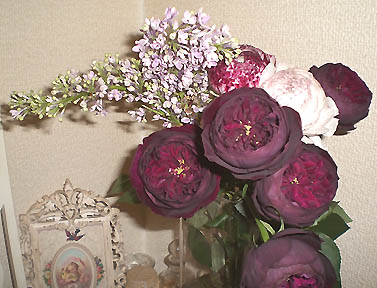 先日のお買い物ん時、デパートにてお花も買ったの♪(つか、買わせた。 今のウチの玄関なのらスb まん丸のころんころんころ~んヽ(=´ω`=)/ 赤黒っぽいのは、薔薇ですYO! 玄関暗いから、本当の色が出ない・゚・(ノ∀`*)・゚・ 明るい所で見ると、くすんだクリムゾン色~゜+.(っ´∀`)っ゜+.゜ 以前は『ロワイヤル』って名前で売られてたけど、 今はちゃんと(?)『ザ・プリンス』ってなってましたb(イングリッシュローズの品種b) 私は、この薔薇、大好きさ~♪⌒ヽ(*゚ω゚)ノ しかし...1本630円と、しっかりデパート価格でしたがっo(゚д゚;o≡o;゚д゚)o 母ちゃんが亡くなった時は、お花なんぞ見る気にもなれなかったケロ。。 やっぱ、お花って・・・ダイスキ━(*´∀`*)━ッ !!! シフォたんにもお花を飾ったげるw 今ベランダはパンジーくらいしか咲いてねーけどネーっ・゚・(ノ∀`*)・゚・ 「(*´ω`)ハィ、シフォたん、可愛いですよォ」 ・・・・・・・・・・・。 怒ってる(;´∀`)・・・うわぁ・・・ 更に怒ってる(;´∀`)・・・うわぁ・・・ 最後は、ブン投げてましたっ(;´∀`)・・・うわぁ・・・ ではでは。。 終わりんぬ~ン(○・ω・)ノ-------------end-------------