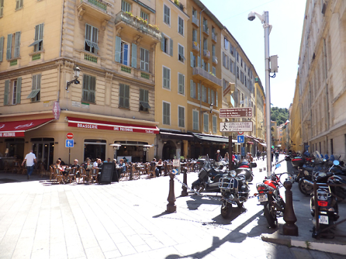 私がコートダジュールCôte d'Azurって名を知ったのは、高校生の頃に遡るwww 確か当時読んでたマンガに出て来たのよw 何だ?この素敵な響きの場所は・・・って、ずっと憧れてたわ(*ノωノ) 憧れてたくせに、コートダジュールっていう街があるんだと いい大人になるまで思ってたのよ(恥) “リヴィエラの女王”と呼ばれるニース。 その語源となったのは、ギリシア語の「ニカイア 勝利」なんだそう。 サルディニア王国の支配下にあった頃のイタリア文化の名残りや、 19世紀より貴族たちを虜にしてきた高級リゾートとしての歴史、 まだ漁港だった頃の素朴さが溶け合って、異国情緒あふれる街並みとなってます。 温暖な気候、降り注ぐ陽光は、多くの芸術家を魅了したんだそう。 ※私をも魅了したっ(〃゚ω゚)ノ wwwww マティス、デュフィ、シャガールといった画家は、 ここで多くの作品を完成させてるそうですおb 前記のサレヤ広場~。 けっこうジックリ見て回ったけど、結局なんも買わずA´ε`;)゚・゚ オペラ座の正面入口~。 このオペラ座裏側は、すぐ海なのだ☆ オレンジ?っつーか、赤みのあるテラコッタ色とでもいうのかな?の壁に窓枠や縁取りはクリーム色で、 よろい戸はオリーブ色にして調和させてるのb この外壁の色を使った装飾は、ニースの伝統的装飾様式の一つなんですって^^ 他にも薄ピンク色の壁に白いよろい戸、黄色い壁に白い窓の縁取りで緑色のよろい戸とか、 その組み合わせは数え切れないほどあって、、、 こういった明るい柑橘色のコントラストが、燦々とふりそそぐ太陽によく映えて、 「これぞ南仏~」って感じがするのよネー(*´・ω・)(・ω・`*)。 狭い路地にカラフルな建物がひしめき合って、まるでおもちゃ箱をひっくり返したみたいw かわたんッ(´ε`*) ニースの中心にあるマセナ広場。 トラムが走ってたお。その周りに街灯くらいの高さで人型の変なオブジェがポコポコと立ってるの分かるかし? このオブジェ、夜には青とか緑に光るらしいのw 役立ってるのかね? 正面の建物は、デパートざます。 パリにもあるギャラリー・ラファイエットだおb 入ってないけどもww 店番中のワンちゃん^^ そしてっ なんとっw今回、お食事の写真を出来るだけ頑張って(?)撮ってみまんた~www いつも何食ったんだか忘れちゃうからねl∀・))))サッ 本日のランチ 店内暗かったから、ボケボケよ^^; ニース風さら~だb(山盛りw) メインのお魚、フォアグラ添え(バターソースがσ゚д゚)ボーノォ!だた) デザートのベリーのミルフィーユ(でかいw) ニース風サラダにはフェンネルの茎も入ってて、香りキツくて息子はオエオエしてましたっけw 私はアンチョビでオエオエしたけど、頑張って食べましたYO!(*´゚艸゚)∴ あ。パンは食べ放題ですwww フランスのパンとバターって何であんなに美味しいんじゃろか? ・・・っと、まぁ、こんな感じ~w 次は、シャガール美術館の後、ヴィルフランシュ・シュル・メール...つ