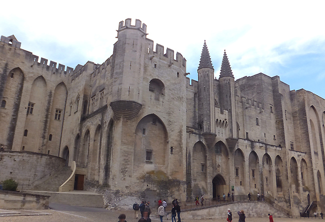 それでは、法王庁へ~ 1334~1352年にかけて、アヴィニョンの二人の教皇が建てた宮殿、法王庁宮殿 Palais des papes d'Avignon。 面積1万5000平方m、高さ50mの広大な建物です。 とても大きいので、まず右側~...つ 真ん中~...つ 12世紀建造の左の大聖堂~ノートルダム・デ・ドン大聖堂 Cathédrale Notre-Dame des Doms...つ てっぺんのマリア様~ パノラマがうまく撮れなかったんだけどもwwwこんな感じの建物だって何となく分かるかね?...つ 観光用列車のプチトラン 法王庁宮殿は、14世紀に7人の教皇(いずれもフランス人よん)が住んだ宮殿です。 見た目がいかついから、宮殿じゃなくて要塞みたいだけどもw 世界最大級のゴシック様式建築で、創建者ベネディクト12世が建てた北半分の簡素な旧宮殿と、 後継者クレメンス6世時代の南半分の豪華な新宮殿に分けられます。 ベネディクト12世は修道士出身で、宮殿も地味で厳格な雰囲気。 一方のクレメンス6世は贅沢好みの貴族出身で、華麗な様式の宮殿を建設したため、 二人の好みの違いがよく表れてます。 宮殿中を豪華なフラスコ画で飾らせたのもクレメンス6世。 当時は豪華な調度品や壁画で飾られてたのが、フランス革命の際に略奪や破壊に遭ってしまい、 ほとんどのものが紛失してしまったそう(ノε`) ティンパヌムもそれを囲むアーキボルトも殆ど無くなってた; 私の聞いた記憶が正しければ・・・ 左の胸像の女性は、シエナのカタリナ。 旧宮殿の中庭。 新宮殿の大礼拝堂は、長さ52mもあるの~(ノ゚д゚)ノ 内部は、現地ガイドさん(おばあちゃまだった)の歴史背景や年代、人物などについて 流暢な説明を聞きながらの見学だったんだけど、あまりの流暢さに、 後に参加者の一人のおじさまが、 「説明の年代なんかは適当に言ってる訳じゃないですよね?」って添乗員さんに言ってるのには笑えたw 実はそれ、私も思ったwww それくらいに神レベルの素ん晴らしい説明だったのよwwwww 外に出まして。。。 法王庁宮殿向かいのバロック様式建物モネー館。 1619年枢機卿シピオーネ・ボルゲーゼの公使団を迎える為に建設され、 ここに造幣局が置かれ、現在は市立音楽学校となっているそう。 大聖堂の左奥の方にプチ・パレ・小宮殿と呼ばれる美術館があって(写真撮り忘れ;) 15世紀末には、あのチェーザレ・ボルジアも滞在したんだそうよ。 私、今ちょうど読んでるんだwチェーザレ♪ 惣領さんの方よ( ´艸`) 法王庁前にあったホテル。 背の高い塔は、時計台。 賑やかな時計台広場~。旗が並んでる建物は、市庁舎よん。 広場にあったモザイク。三つの鍵はアヴィニョンの紋章。 街の様子 この日のランチは、前菜しか撮ってなかた...(((´ω`;)ススス ラタトゥイユです...つ 自分で作った方が美味しいんですけどおwww メインは子羊のグリル、デザートは…忘れたわ~ヽ(;´Д`ヽ)(ノ;´Д`)ノ カトリックの歴史が残る 気品に満ちた中世の街アヴィニョン。 今回は観光のみで宿泊出来なかったから・・・ 今度来ることがあったら、夕暮れ時も見てみたいわー(*'ω')..。o○ 次は、アルルへ...