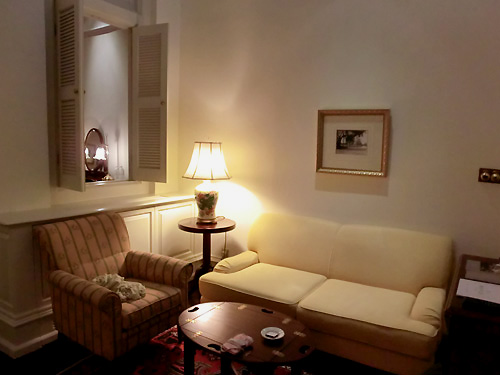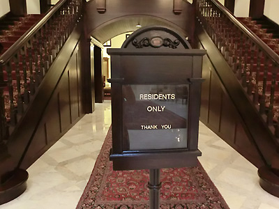 では、RESIDENTS ONLYのその先へ。。。 前にも載せましたけど、立て札w 札の裏側から。 進んでいくと。。。それはそれはリュクスな空間が広がっておりました。 エレベーターで上階まで。 エレベーターも鍵を入れないと動きませぬb 3Fには、このホテルの模型があったので撮ってみましたYO! かなり大きいことが分かるかと・・・ しかし1887年の創業当初は、10室しかない小さなホテルだったそうな。 随所にオリエンタルなカーペットやアンティークな家具、調度品の数々が飾られてるの☆ シャンデリアももちろんアンティークやでw 1Fロビーを覗いてみたところ~。 今にもドレスを着たご婦人が現れそうな...20世紀初頭の世界だわね(*´ε`人) 3Fのラウンジです...つ。 歴史を感じさせる階段も素敵でした☆・゚:*(人´ω`*) 静々と。。私らしくないお上品な歩き方になってしまうわょ(* >ω