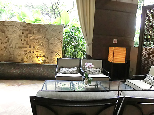それでは お部屋どす。とってもワイドでございましたよb 玄関ドアを開けて すぐのリビングの左側には、前記で載せたウェルカムフルーツの乗ったテーブル。 右側には ソファーとテーブル。TVもあったけど撮ってないw あ、喫煙ルームですよw 家具類は凄く古い(と思う)んだけど、綺麗に保たれてます。 貴族さまが使うようなワードローブwは、右側の扉を開けるとTVが入ってました。 真ん中には、蚊よけのクリームも入ってたわね。 スイッチ類もアンティーク調で、お部屋の雰囲気を一層と盛り上げてたわ。 そんでもって、 お部屋の中に お花やグリーンが飾られてるのって、とても心安らぐのよね(*´ω`*) お・も・て・な・し(´ε`)? 寝室。 寝室とリビングは、カーテンで仕切られてました。 絨毯の模様の中に鳥を見つけて喜ぶw スリッパは、フォーシーズンズと同じくらいフカフカだた。 リビング側から寝室を覗く..|、ン、) チラッ 天井が高いから、ワイド感が2倍でしたね。 リビングと寝室の両方の天井にレトロなファンがありました。 つづいて、洗面ルーム。 このホテルもダブルシンク。1つだとケンカになるうちらだから良かったですw 蛇口もレトロで素敵だし、タオルは金と銀のより紐で結んでましたわ(凝ってんなw)。 アメニティは 南仏の『Fragonard フラゴナール社』とのコラボで、全てプルメリアの芳しい香り。 ソープをひっくり返して撮ってみたけど、いまいち分からんねw バスルーム。 全体を撮ってなかったみたいだ^^; バスタブの左側がシャワールームだったっす。 トイレにはビデは無く、何故か陶器の象さんがw シャワーは、白いレバーを1回転させるとお湯が出ます。 バスローブが、見た目シャツっぽくて肌触りが硬かったらヤダな~思てたら... 着てみると、めちゃくちゃ柔らか~でした(*´ε`人)そりゃそうよねwラッフルズだもw 宿泊者の何人か(海外のご老人)は、このバスローブを纏って宿泊棟内をうろうろしてましたわw きっとスパ帰りだったんだと思うわ。 お部屋の感想はですね。。 これはもう ホテルのお部屋ではなく、1軒のお家でしたwwww お部屋で少し寛いだ後、ホテル内の散策に出掛けましたYO! 先ずは宿泊棟の屋上にあるプールへ。。。っつっても3Fだけどw 隣接してるスパを通り抜けたところにあります。 残念;雨降ってるお;; プール入口に居たおっちゃんが、「雨降ってて残念だけど何か飲みませんか?」って言ってくれたけど、 「写真撮りに来ただけだから、また後で来ます」と言って帰ろうとしたら、 「ここ撮らなくていいの?」と言われたので、撮る気なかったのに↓撮ってみたw すごく気さくなおっちゃんで、カメラ向けたらポーズ決めやがったww ここのホテルのスタッフは 他の人達もそうだけど、 笑顔がとっても素敵なのよb 作り笑顔じゃないのよね。 ここで働いてるっつー自信みたいなのも凄く感じるの... かといって、慇懃無礼な感じでは全く無いのよッ(ヾノ・ω・`) 名門ホテルってことで、こちらが気を張ってしまいそうなところを、 爽やかな笑顔で和らがせてくれるのかなぁ? ついつい、こちらも笑顔になってしまうの・・・そんな感じでしたわ(´ω`)アハン 次は、ホテルの中~。
