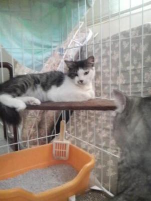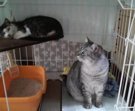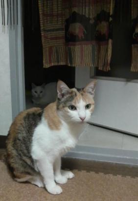 ペロのネコ部屋は、トトは立ち入り禁止入っても、ずっと監視をしないと、窓から脱走するからだトトが入りたいと言うので、監視下のもと立ち入り許可に慣れのため、ペロケージの入口をはずしていたら、うらやましそうに中に入っていったあちこちニオイを嗅いで、ペロのニオイも嗅いで・・・落ち着いて座り込んでしまった。。 お互い、シャーシャーも言わず、ペロは微動だにせず無視 10分近く、この状態で、そのうちトトが飽きて出て行ったペロが庭に来ていたときは、すごい喜びの反応だったのに、家に入れたら興味なしか 仲良しになってくれたらいいんだけどなぁ