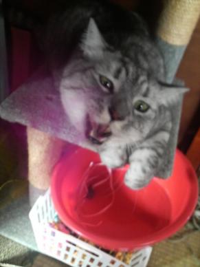 姉やん、せっかく買ったエクササイズDVD、長く放置した挙句、説明書読んだだけで終わりか仕方ないから、代わりにやってあげるわタワーも使ってヒョイヒョイあーしんどかった今日はもうおしまい所要時間、2分半でした。。。人間もネコも、なかなかやる気出ません