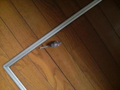 今日は早朝から、母が祖母の所へ出かけた。父の車出勤に便乗して行ったため、6時前には、トトがひとりぼっちになったようだ。私が2階から降りてくると、トトの姿はなく、台所にネズミのおもちゃが転がっていたひとりで遊んでいたのだろう。。探すと、居間でしょんぼりと寝転がっていたこの姿に、とてもかわいそうになって、母から禁止されている、高い鰹節をあげたしかし、このネズミ、丸くグレーの胴体、細いしっぽ、トト、なんかキミによく似てませんかネズミトトキミの巨体のことは、あえて言いますまい・・・ ペロは、病院に連れていくことばかり考えたため、信頼関係が後退し、ストレスハゲもできたので、しばらくは様子を見ることになった成猫の野良を慣れさせることって、こんなに大変なんだなぁ当分は撮影も控えよう