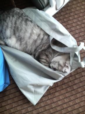 箱と袋に入るのが大好きなトト、今日も朝から、クリーニング屋さんの袋でスヤスヤ でも、頭隠して。。。 尻隠さず。。 あ、起きた さすがに今日は暑いにゃ~
