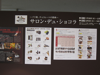 今年もJR京都伊勢丹で開催の~パリ発、チョコレートの祭典~『サロン・デュ・ショコラ』 初日の今日、仕事帰りに行ってきました~☆まぁいつものことながら、初日でも人気の物は 売り切れだろうなーと諦めながら出陣。まずお目当ての「セバスチャン・ゴダール」へ♪ ショーケースの中はほとんど売り切れの赤い札。でも、あれ?こんなショコラやったっけ? とじっくり見ると、事情によりパンフレット掲載のものは販売していないとの事。残念(>_
