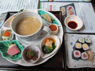 今週金曜日の昼休み、京野菜「了以」さんが場所を移してリニューアルオープンと いうことで、1月7日にオープンした『ラ・テラス了以』さんへ行ってきました~ ^^☆ 11日まではオープン記念価格でなんと20%off!!この機会に行こう~と昼休みに ダッシュ♪この前『ル・プティスエトミ』さんへあんぱんを買いに行った時に念の為 に予約をしておいて正解(^-^)満席でした。ランチのメニュー色々ありましたが、お 店の人もオススメの「了以プレート」1400円をいただきました(*^-^*)/ 「了以プレート」1400円→1120円♪ 具沢山の豚汁☆温まりました♪ お店の雰囲気はとってもカジュアルな感じ♪ほとんどの方が「了以プレート」 を頼まれてました ^^*少しずつ色んなお料理が楽しめて女子好み♪初め 量少ないな~と思ったけれど、たっぷりの豚汁でお腹も膨れました ^^ゞ一 品一品丁寧に作られていて、上品。これだけ贅沢におかずがあるから、白ご 飯でもOKな感じ。昼休み、バタバタで食べるのかと思っていたのに意外と ゆっくりいただけました♪「ラ・テラス了以」さん、この3連休は10%off、「シ ティリビングを見て」と言うと2月28日まで10%offになりますよっ☆ ■ラ・テラス了以 京都ホテルオークラ北隣(河原町通り押小路東入ル TEL:075-254-2509 営業時間:11:30~14:30/17:30~21:00