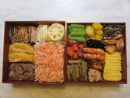 新年明けましておめでとうございます(*^▽^*)/2014年が始まりましたっ♪♪今年も美味しいものといっぱい出会える一年になりますように☆まずはおせち料理とお雑煮から ^^*今年は簡単にしようと思っていたので、量もそんなに作らず2段のみ。今年も美味しく作れました♪海老は、天草から送ってもらった車海老で作ったらめちゃくちゃ美味しかった!ごまめも今年は根気良く煎ったからかとても美味しく、いっぱい作ったのに皆ペロリと食べてくれ嬉しい♪紅白なますの大根が、大原で買ったものだけど、ちょっと辛かった(>_