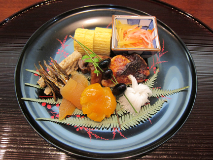 新年初ランチは、『御料理辰むら』さんへ先週末どうしょう寺さんと行ってきました~☆1800円で本格的な和食が食べられるという事で、既に人気のお店。一ヶ月くらい前に予約しました♪場所が少しわかりにくく、四条河原町のマルイの裏あたりの細い路地にあります。1日10食限定の点心1800円も予約できるということで、予約をして点心をいただきました(^-^)/☆八寸 とてもお正月らしい綺麗~な八寸♪出し巻き、柿の紅白なます、ごまめ、味噌漬けの数の子、たたき牛蒡、棒鱈、赤ワインで炊いた黒豆etc☆鯛そぼろご飯と赤だしとお漬物☆玉葱の入ったさつまあげと白菜の炊き物メインがさつまあげというのがちょっとがっかりでした・・・。☆デザート 牛乳で作った自家製葛餅小豆のせ♪黒蜜とはったい粉がかかってます☆八寸は、一品一品がとても丁寧に作られていてどれも美味しい♪ただ、ほぼおせち料理という内容が残念(>_