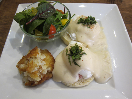 たまりにたまってる去年行ったところなど随時UPしていきます ^^ゞまずは『MARIEBELLE』さんのブレックファーストから♪モーニングメニューが出来ると聞いた時からずっと行きたくて、ようやくの訪問☆ショコラ嫌いの友達から「マリベルのエッグベネディクトが食べたい」と言われ、念願叶いました(^-^)/10:00にお店前で待ち合わせ。5分ちょっと前に着くとお店の前に人が少しおられてちょっと焦った!友達は遅れて来たので先に入っておいて3組目。無事席に着けてホッ ^^*マリベルではモーニングと呼ばず、ブレックファースト♪10:00~12:00まで楽しめます ^^*ブレックファーストのメニューは3種類♪●エッグベネディクト (ドリンク込で1575円)●クロックムッシュ (ドリンク込で1575円)●アーモンドフレンチトースト (ドリンク込で1365円)私たちは始めから食べるものを決めていて、エッグベネディクトとアーモンドフレンチトーストを☆☆エッグベネディクトマリベルオリジナルレシピに基づくソースが自慢のNYで大人気の朝食とのこと♪エッグベネディクトといえば少し黄色いオランデーズソース。こちらのソースはベシャメルベースのホワイトソース♪トーストしたイングリッシュマフィンの上にサーモンとハム☆2種類の味が楽しめます♪そして上にポーチドエッグ!ポーチドエッグを半分に割ると黄身がとろ~り☆☆アーモンドフレンチトーストアーモンドの風味がポイントのフレンチトースト♪もっと甘甘かな~と思いきや、そこまで甘くなく ^^*フレンチトーストなんて、小さい頃父親が作ってくれて食べた以来かも!?ってくらい久しぶり。トーストがちょっと柔らかすぎるなぁ~と。もう少しカリっとしたフレンチトーストの方が好みです♪飲み物は、珈琲(Hot&Ice)・紅茶(Hot&Ice)・カプチーノ・カフェラテから選べ、紅茶はメニューの中から選べました♪ポットサービスで3杯分くらいありました ^^そして珈琲はなんと飲み放題☆☆豪華な朝ごはん~ ^^♪朝から、と言ってもお店を出たのは11:30すぎだったので早めのランチという感じでしたが贅沢なブランチをゆったり楽しめました~(^-^)/ ■マリベル 京都本店 京都市中京区柳馬場三条下ル槌屋町83番地 TEL:075-221-2202 営業時間:10:00~19:00(ブレックファーストは10:00~12:00) 定休日:火曜日この日は街中で買い物したりぶらぶらショッピング♪休憩は、二人とも気になっていた『タカセガワブルースコーヒー』さんへ(^-^)☆☆私はジンジャーエール 500円♪☆コーヒー(500円)とブラウニー♪☆ブラウニー 400円♪ お店は結構広々としていて、ゆったりソファーで寛げます♪素敵な音楽が流れていて、いつまででも長居したくなる空間でした ^^*お店はビルの4階。ガタガタのエレベーターに乗った時は大丈夫かな!?とかなり心配でしたが街のど真ん中の隠れ家的カフェです(^-^)♪ ■タカセガワブルースコーヒー 京都市中京区油屋町143洋燈館ビル4F TEL:075-223-3355 営業時間:10:00~24:00 定休日:火曜日